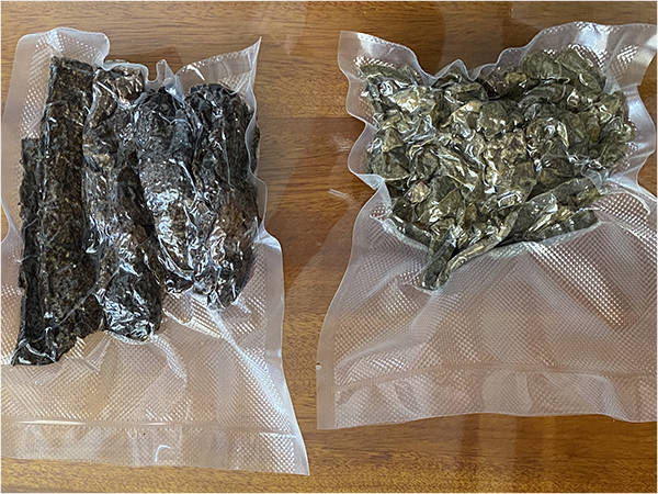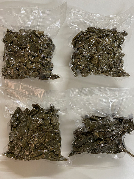 After careful initial analysis, looking for possible contaminants and removal of small debris, the freshly bought propolis is vacuum packed prior to export in natura to USA, to be processed.
